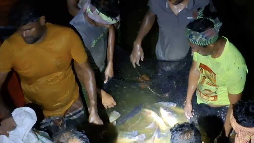 গভীর রাতে সরকারি দিঘির মাছ ধরে নিয়ে গেলেন ২ সহকারী কমিশনার